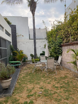 Casa de un piso con 3 recámaras, jardín y cochera.